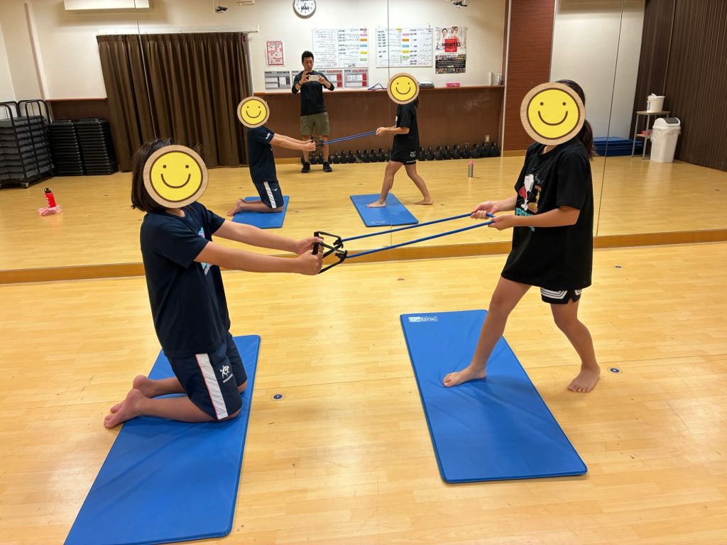 よって、チューブを使ってトレーニングしていく前に、体勢を整える準備運動にも時間を費やします。