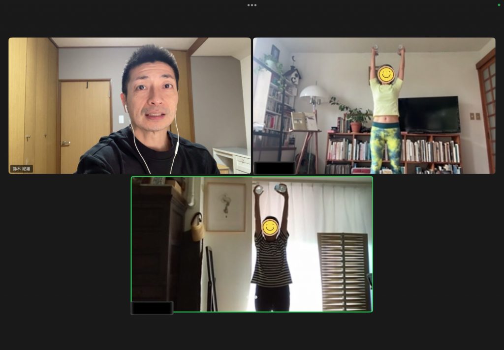 ※オンライングループレッスン(ご参加頂く皆様がより楽しく快適な毎日を過ごせるよう、その実現に必要なテーマを設定し、座学で正しい知識の吸収を、実技で運動習慣の定着を促す毎週日曜日1回45分間の月会費制レッスン)