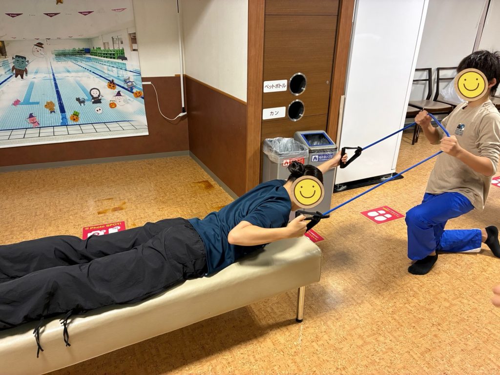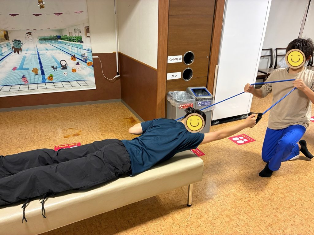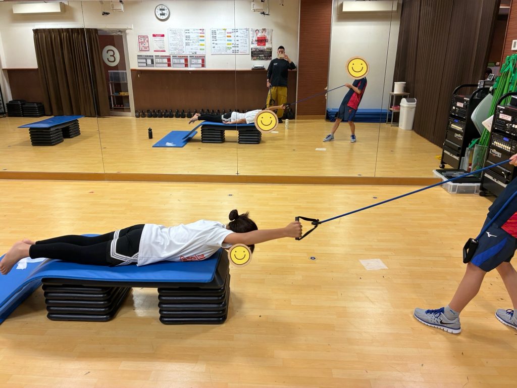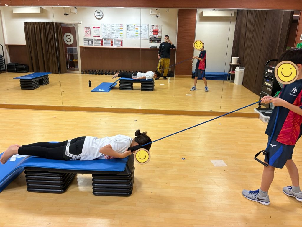 これまで、ストロークの筋力を高めるために、チューブを使った「背中」のトレーニングを進めてきました。