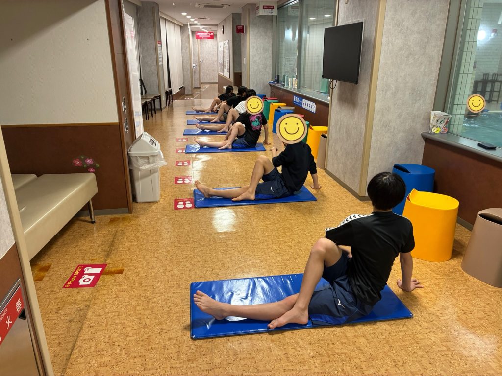 現在のBクラスの選手は、競泳のための陸上トレーニングを始めてまだそこまで期間は経っていないのですが、Academyの場だけでなく、1週間の間の選手個人の練習も含めて頑張ってくれている甲斐あって、予定より早めにメニューが進行しています。